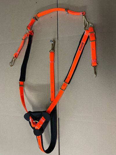 Biothane Breast Collar features breathable Airnet design with a soft neoprene protector for a comfortable fit. Naval brass hardware lasts for years. $160
