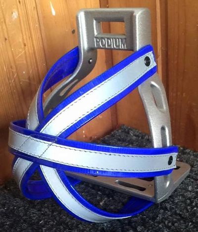 New 6 point Biothane reflective safety cages. Reflective option for safety when riding in dark conditions. They fit the standard or XT stirrups and come with mounting rivets (must drill stirrup for rivet installation).